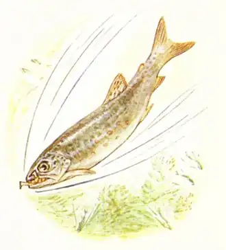 UMA GRANDE e enorme truta apareceu—kerpflop-p-p-p! com um respingo—e agarrou o Sr. Jeremy com um estalo, "Ai! Ai! Ai!"—e então se virou e mergulhou no fundo do lago!