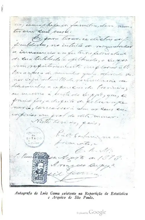 Não é, portanto, possivel duvidar de que Luiz Gama, com as provas, tirou ao teimoso a vontade de pleitar a sua recondução ao cativeiro. Esses documentos foram naturalmente destruidos, juntamente com todo o arquivo da escravidão, por obra daquela celebrada Circular nº 29, de 13 de maio de 1891, que Rui Barbosa fez expedir quando Ministro da Fazenda. Ninguem póde compreender como uma idéa tão desastrada tenha surgido ao espírito do insigne baiano. Suprimiu assim, com uma penada, toda a preciosissima e inigualavel fonte de informações para o estudo da influência negra em nossa evolução racial.