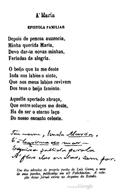 - ↑ José Feliciano, no citado artigo do «Estado de São Paulo», em dezembro de 1930, com o titulo «Luiz Gama e as Trovas de Getulino», aludindo á piada, relembra que era esse o prato predileto do Imperador.