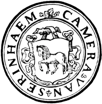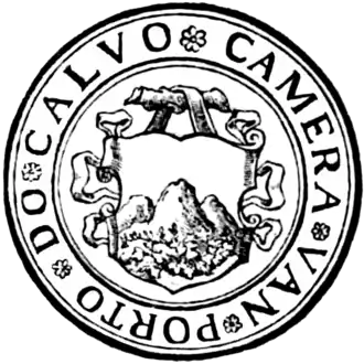 Os brazões d’armas das Camaras de Pernambuco, não descriptos por Barlaeus, eram assim concebidos: Iguarassú, tres carangueijos, ou mais propriamente arratús, em roquete (Fig. 6); Serinhãem, um cavallo a passo, com certeza alludindo aos excellentes animaes de sella então criados naquella comarca (Fig. 7); Alagoas, tres tainhas em faixa (Fig. 9), e Porto Calvo tres outeiros representando a sua caracteristica orographica. (Fig. 8).[2]