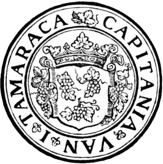 A capitania de Itamará tem uns cachos de uvas, porque esta ilha produz as melhores uvas do Brasil (Fig. 13).