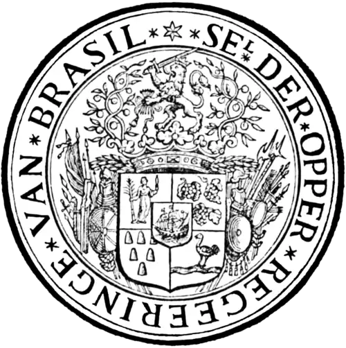 «Para cada capitania engenhou (em 1639) o conde Mauricio de Nassau o seu brazão), e comprehendendo-os todos em um só escudos, fez um que indicava os limites do Brasil Hollandez, para uso do Concelho Supremo (Fig. 1). Por cima deste brazão levantava-se o das Provincias Unidas da Hollanda, e na parte inferior occorria o symbolo da Companhia das Indias Occidentaes.