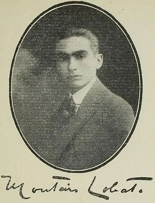 José Bento Monteiro Lobato nasceu em Taubaté aos 18 de Abril de 1884, de antiga familia da localidade. Formou-se em direito pela Faculdade de São Paulo e foi promotor publico em Arêas, abandonando, porém, a carreira, não só da magistratura, como das letras juridicas, para se dedicar a ontras actividades. Iniciou-se como escriptor, publicamente, ainda como estudante, e quasi sempre sob o pseudonymo de Helio Bruma. Foi fazendeiro em Caçapava durante alguns annos. Hoje reparte seus labores entre a literatura e a empresa editora de que é chefe (a mesma empresa da «Revista do Brasil»). ) seu primeiro livro, de grande successo em todo Brasil, foi o dos «Urupês», que, lançado em 1918, ja está em 6.a edição e ainda terá muitas outras. Seguiram-se : «Idéas de Jéca Tatú», 1919; «Cidades mortas», 1919; «Problema vital, (serie de artigos publicados no «Estado de Sao Paulo»), 1919; «Negrinha», 1919; «A Menina do Narizinho Arrebitado», historia para crianças, 1920. Tem collaborado, entre ontros, nos seguintes jornaes e revistas : «Estado de São Paulo», «Correio da Manha», «Jornal», «Jornal do Brasil», «Revista do Brasil», «A Vida Moderna», etc. As suas primeiras armas, á parte algumas escapadas, foram feitas n'«O Minarete», brilhante jornalzinho que se publicou em Pindamonhaugaba, ha pouco mais de 15 annos, e de onde sahiu toda uma serie de moços que fizeram bella carreira.