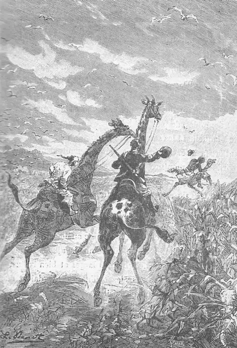 mento de Vandergaart. Mas cada um arranja-se como pode. Estava-se no deserto, e as girafas não deviam ser cavalgadu