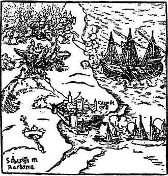 Em Pernambuco tinham estabelecido os portuguezes uma colonia, Olinda, commandada por Duarte Coelho, a quem entregámos os prisioneiros tomados.