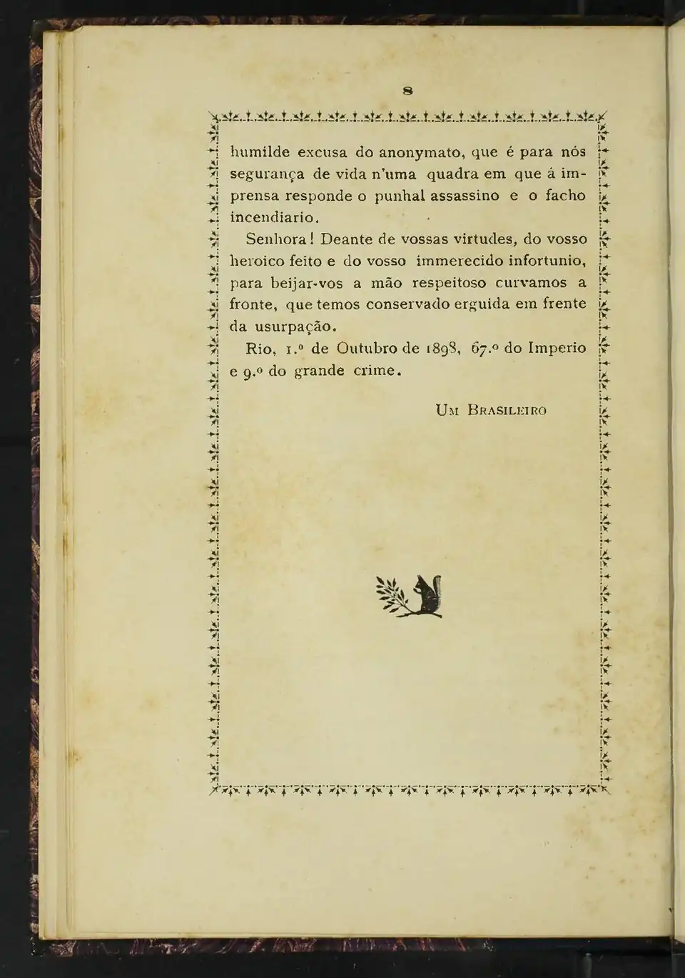 Rio, 1.º de Outubro de 1898, 67.º do Imperio e 9.º do grande crime.