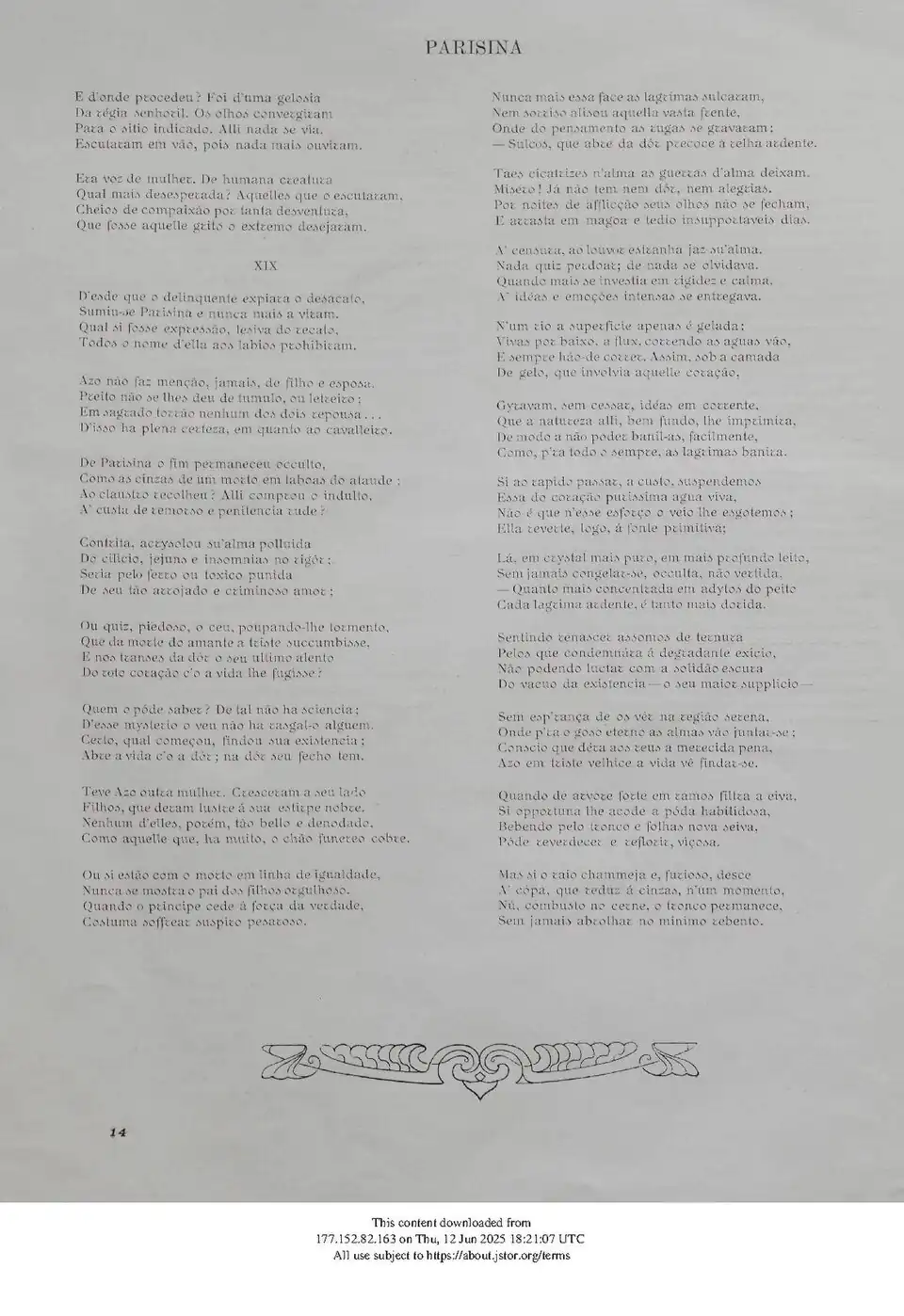 O exito foi muito além de seu desejo; pois não só deixou a moça de aborrecer, como sentiu abrasar-se-lhe o coração de apaixonado amor ao filho de seu marido. A՚ volta, nunca teve e marquez occasião de renovar á Parisina as arguições, que, outr՚ora, lhe fazia a respeito de Hugo.