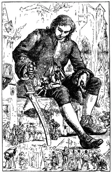 Por último, que, depois de ter feito este solene juramento, de modo a respeitar todos os artigos que foram mencionados, o referido homem montanha terá um fornecimento diário de carne e de bebidas suficientes para o sustento de 1724 de nossos súditos, com livre acesso a nossa majestade imperial, e a outras demonstrações de nossa generosidade. Concluído em nosso palácio de Belfaborac, no décimo segundo dia da nonagésima primeira lua do nosso reino. Jurei e assinei todos aqueles artigos com grande alegria e contentamento, embora alguns deles não tivessem sido tão honoráveis como gostaria que tivessem sido, o que era resultado totalmente da maldade de Skyresh Bolgolam, o alto almirante: finalmente minhas correntes foram soltas imediatamente, e eu estava em plena liberdade. O próprio imperador, pessoalmente, deu-me a honra de estar presente em toda a cerimônia. Fiz meus agradecimentos ajoelhando-me aos pés de sua majestade: mas ele ordenou que me levantasse; e depois de muitas expressões amáveis, as quais, para evitar a censura da vaidade, não irei repetí-las, ele acrescentou, que esperava que eu desse mostras como útil servidor, e que bem merece os favores que ele já me havia conferido, ou poderia fazê-lo no futuro. O leitor com certeza irá perceber que, no último artigo da reconquista da minha liberdade, o imperador estipulara a concessão de carne e bebida suficiente para o sustento de 1724 liliputianos. Algum tempo depois, perguntando a um amigo na corte, como é que eles chegaram a fixar essa quantidade exata, ele me disse que os matemáticos de sua majestade, tendo tirado a altura do meu corpo com a ajuda de um quadrante, e descobrindo que ele era maior na proporção de doze para um, concluíram pela similaridade de seus corpos, que a minha proporção deveria ser equivalente pelo menos a 1724 deles, e consequentemente iria exigir tanta comida quanto necessário para alimentar esse número de liliputianos. Com isto o leitor pode ter uma ideia da engenhosidade daquele povo, bem como da prudência e da economia exata de uma príncipe tão sábio. |