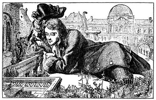 Depois das pessoas terem sido notificadas pela segunda vez, entrei novamente na cidade até o palácio com meus dois banquinhos em minhas mãos. Quando cheguei ao lado do pátio externo, fiquei de pé em cima de um banquinho, enquanto segurava o outro em minhas mãos, e assim passei por cima do telhado, e suavemente o coloquei no espaço entre o primeiro e o segundo pátio, que era de 2,4 m de largura. Depois passei muito tranquilamente sobre os edifícios de um banquinho a outro, e puxava o primeiro que estava atrás de mim com uma vara em formato de gancho. Com isso em mente, eu entrei no pátio mais interno, e me deitando de lado, coloquei meu rosto nas janelas dos andares médios, que foram deixadas abertas com esse propósito, e vislumbrei os apartamentos mais maravilhosos que alguém pode imaginar.
