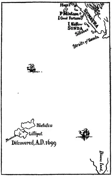 Não irei, porém, antecipar ao leitor dando maiores detalhes a esse respeito, porque eu reservo essas informações para um obra de maior volume, que já está quase pronta para ser impressa, contendo uma descrição geral deste império, desde a sua origem, através de uma série de príncipes, bem como um relato particular de suas guerras e da política, direitos, ciência e religião, sua flora e fauna, seus modos e costumes particulares, com outros assuntos bastante curiosos e úteis, meu objetivo principal na presente obra é apenas relatar esses eventos e ocorrências que aconteceram comigo para o público ou para mim mesmo durante a permanência de nove meses nesse império.