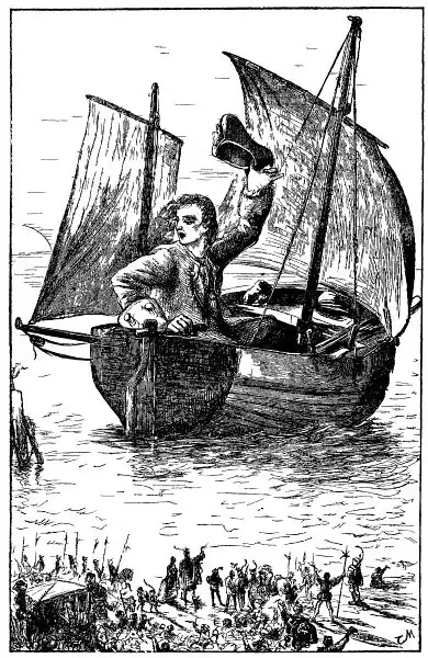 [O autor, por uma questão de sorte, encontra uma maneira para fugir de Blefuscu, e, depois de algumas dificuldades, retorna são e salvo para o seu país de origem.]