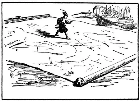 Eu medi um dedinho que havia caído de uma dessas estátuas, e que permanecia despercebido entre alguns entulhos, e descobri que ele media exatamente vinte e seis centímetros de comprimento. Glumdalclitch o embrulhou em seu lenço, e o levou para casa em seu bolso, para guardá-lo junto com outras bugigangas que a garota gostava, como fazem as crianças de sua idade.