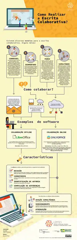 Existem diferentes modalidades e possibilidades da escrita colaborativa, incluindo o uso de tradicionais editores de texto. O infográfico ao lado apresenta essas opções e lhe ajudará a pensar nas melhores aplicações para o seu contexto.