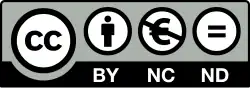 | Atribuição-Sem Derivações-Sem Derivados - CC BY-NC-ND Esta é a mais restritiva das nossas seis licenças principais, só permitindo que outros façam download dos seus trabalhos e os compartilhem desde que atribuam crédito a você, mas sem que possam alterá-los de nenhuma forma ou utilizá-los para fins comerciais. |