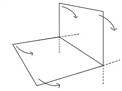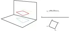 Estes planos de projeção são o plano frontal de projeção e o plano horizontal de projeção, e a sua intersecção é chamada eixo x.