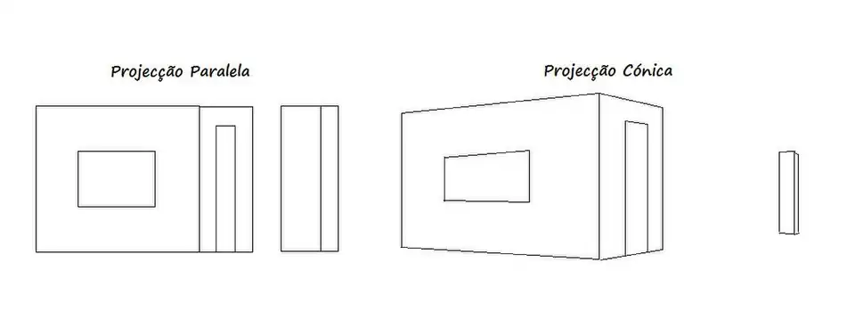 A vantagem da projecção cónica é a adequação da imagem à realidade da visão humana, enquanto a vantagem da projecção paralela é a facilidade em retirar medidas em verdadeira grandeza.