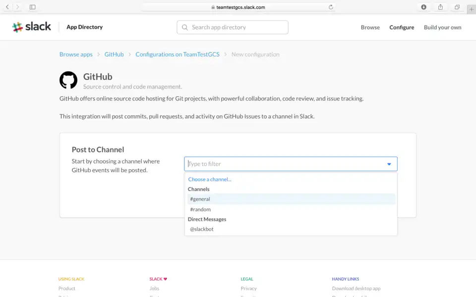 4. Selecione o canal em que deseja realizar a integração e clique em "Add GitHub Integration".