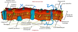 - Através de observações ao microscópio electrónico verifica-se a existência de uma bicamada, ou seja, uma dupla lâmina de fosfolípidos com a sua parte hidrófoba (cadeia de ácidos gordos) dirigida para o interior, coberta externa e internamente por uma camada de proteínas com uma espessura de 7,5 a 10 nm.
