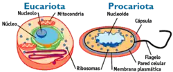 As células eucarióticas constituem quase todos os organismos vivos, excetuando as bactérias, as cianobactérias e os micoplasmas que são seres procariontes. As células dos procariontes são geralmente mais pequenas que as células eucarióticas, são constituídas por um número limitado de organelos, não possuem o ADN incluído no núcleo pois são desprovidos de membrana nuclear. As células eucarióticas são constituídas por vários organelos delimitados por uma membrana dupla. A principal diferença entre estas células e as células procarióticas é o facto de possuírem núcleo , é neste organelos que se localiza o material genético, o ADN .