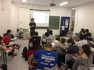 Na segunda parte da aula tivemos a apresentação do registro da wikiversidade do grupo da aula 12, em que eram responsáveis pelo registro dos dias 24 e 27 de maio de 2015, que ocorreu a Semana Mundial do Brincar. Mostrando assim, que no dia 24 o evento ocorreu na praia em frente a fonte do sapo e no dia 27 o evento ocorreu no SESC Santos, ressaltando a importância do brincar na sociedade. Como forma de avaliação aos alunos, eles usaram as suas criatividades para criarem brincadeiras e consequentemente atingir o público-alvo que eram crianças de até 12 anos de idade, fazendo com que de certa forma desenvolvessem o seu repertório motor, intelecto e cognitivo.