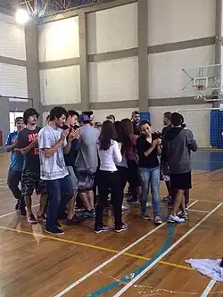 No dia 15 de junho de 2016, tivemos uma aula prática na quadra do Universitas. Primeiramente o professor deu uma breve instrução sobre os tipos de jogos que seriam abordados naquele dia, alegando que seriam jogos de roda e que posteriormente os alunos responsáveis por registrar a aula relacionariam os jogos com os tipos de classificação proposto por Callois (Âgon, Alea, Mimicry e Ilinx).