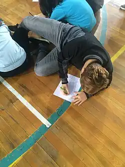 A próxima atividade explorada ainda era em círculo, realizar desenhos livres em folhas de rascunho, que a um sinal do professor as folhas deveriam ser passadas para o lado e dar imediata continuidade nos desenhos agora em suas mãos. Esse tempo de passar a folha adiante para o outro variava muito e em alguns casos, que as pessoas estavam presas aos seus pensamentos sobre o que fazer naquele desenho já iniciado e com ideias de outras pessoas, muitas vezes não era suficiente nem ao menos de iniciar a desenhar algo ou conseguir adentrar nesse mundo que começou a ser criado naquela folha. Em outros casos, os desenhos eram deixados incompletos e uns iam completando os pensamentos dos outros através dos desenhos. Desta forma eles entravam e davam seguimento aos cenários e mundos criados pelos outros em um tempo curto e variável, deixando uma marca de personalidade em cada folha passada por suas mãos.