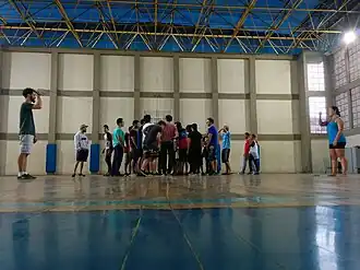 A aula aconteceu em um dia chuvoso, o que acabou obrigando a aula a se iniciar com um número reduzido de pessoas, embora isso não tenha alterado a “ funcionalidade” da brincadeira. O professor fez uma breve explanação sobre a Semana do Brincar, que a atividade que seria realizada mais tarde, poderia ser aproveitada nessa “ Semana”. A primeira brincadeira foi bastante simples.