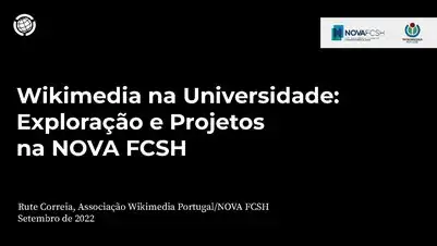 É wikimedista em Residência na NOVA FCSH, onde faz a ponte entre a Wikimedia Portugal e a faculdade. Na oficina, compartilhará alguns casos de estudo, desafios e dicas para integrar plataformas e ferramentas Wikimedia no contexto acadêmico.