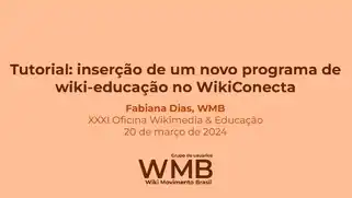 Assistente de projetos do Wiki Movimento Brasil (WMB). Jornalista, especialista em Comunicação Estratégica pela Universidade Federal da Bahia (UFBA), graduada em Comunicação Social/Jornalismo pela Universidade Federal do Recôncavo da Bahia (UFRB).