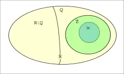 O conjunto dos números racionais (representado por , o uso da letra é derivada da palavra inglesa quotient, cujo significado é quociente, já que a forma de escrever um número racional é o quociente de dois números inteiros, com o denominador diferente de 0) é definido por: