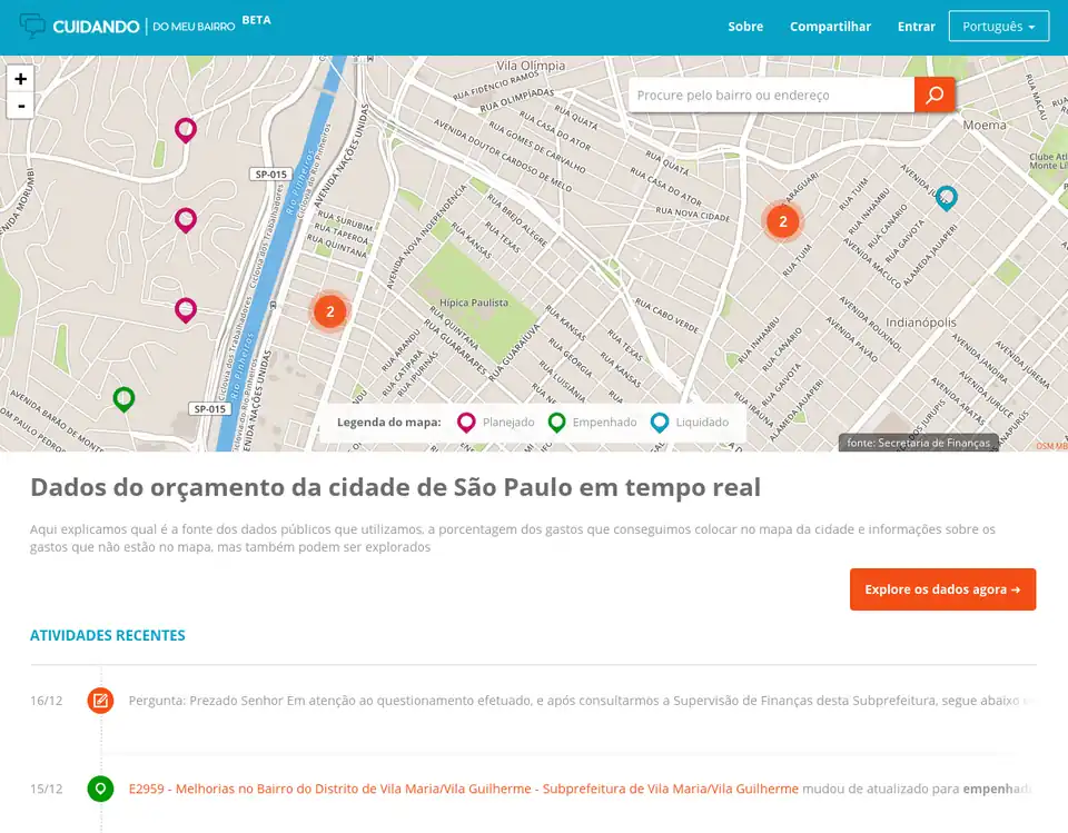 Cuidando do Meu Bairro: plataforma social na ferramenta de mapeamento do orçamento público.