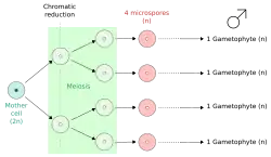 - Na meiose masculina, os quatro núcleos são incluídos em células individuais (espermatídes), que depois, por um mecanismo de espermatogénese, se diferenciam em espermatozóides (estes possuem capacidade de locomoção e usualmente tem um flagelo).