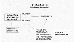 É importante notar o peso que a noção de TRABALHO tem no pensamento de Marx. O trabalho é a forma pela qual os seres humanos produzem o mundo em que vivem, o modo pelo qual trabalham, as relações que estabelecem entre si e as ferramentas e técnicas que criam acabam por configurar esse mundo.“Pelo trabalho, o homem … modifica o mundo e se modifica a si mesmo. Produz objetos e, paralelamente, altera sua própria maneira de estar na realidade objetiva e de percebê-la.” (Leandro Konder. O futuro da filosofia da práxis)
