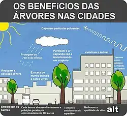 "A vegetação urbana desempenha funções muito importantes nas cidades. As árvores, por suas características naturais, proporcionam muitas vantagens ao homem que vive na cidade, sob vários aspectos: