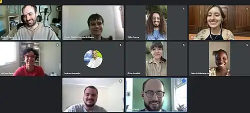 Estes resultados orientaram o programa a novas perspectivas, focando na identificação e valorização de processos já existentes na comunidade, como a atuação de wikimedistas em iniciativas voltadas a engajar pessoas para a melhoria de conteúdo sobre temáticas de seus interesses. ![]() Estruturação do programaDando continuidade às atividades realizadas durante a WikiCon, o calibra estruturou um processo colaborativo para o desenvolvimento do programa. Este processo foi baseado em discussões estratégicas sobre os principais temas de interesse identificados no questionário (GLAM-Wiki, educação e diversidade), buscando identificar os principais desafios comunitários para a realização de atividades naqueles temas e as oportunidades das quais seria possível tomar vantagem para solucioná-los. Ao final do processo, foi entregue um programa de capacitação focado na realização de projetos para parcerias educacionais e culturais, desenvolvidos a partir de uma metodologia voltada à identificação e à solução colaborativas de problemas. Implementação do programaO programa desenvolvido em 2022 foi implementado em 2023, financiado por um novo MSIG. Foram selecionados 19 participantes, de acordo com três critérios. O primeiro critério foi a familiaridade com as plataformas Wikimedia, uma vez que o objetivo não era capacitar pessoas para edições, mas sim para uma atuação organizativa e estratégica. O critério seguinte foi a diversidade regional, seguindo o objetivo previamente estabelecido de formar lideranças em regiões sub-representadas na Wikimedia brasileira. E o último critério foi a não filiação à Wikimedia Brasil, partindo do pressuposto de que os wikimedistas membros da organização já tinham uma estrutura à disposição de seus interesses de atuação. ![]() O resultado da utilização destes critérios foi a formação de um grupo diversificado em termos de distribuição regional, interesses de atuação e experiência organizacional no Movimento Wikimedia. Também nesse sentido, foi aberta uma exceção para dois wikimedistas da Guiné-Bissau que estavam em diálogo com a Wikimedia Brasil para a formação de um grupo de usuários local. Ao final do processo de seleção, o grupo a ser capacitado era formado por 18 pessoas, das quais 9 estavam fora das regiões sudeste e sul do Brasil. Realizada a capacitação, o passo seguinte foi a formação de uma rede de colaboração para apoiar a implementação dos projetos desenvolvidos pelos participantes. A atuação em rede foi estruturada de acordo com uma das premissas básicas do programa: a constante interlocução e colaboração entre os participantes. O processo também foi conduzido pela identificação de algumas oportunidades para a atuação das pessoas capacitadas, entre as quais a principal foi a possibilidade de financiar os projetos desenvolvidos durante o programa. A organização em rede permitiu uma nova forma de perceber a formação de lideranças para o Movimento Wikimedia, focada no reconhecimento das capacidades necessárias para a implementação das iniciativas planejadas e na identificação de quais colegas poderiam oferecer estas capacidades. Esta prática fortaleceu a rede formada entre os participantes, fazendo com que estivessem presentes nos projetos uns dos outros e os levando a pensar e implementar projetos colaborativos. Outro aspecto importante da articulação em rede foi a abertura para a incorporação de novas pessoas, que conheceram o trabalho realizado pelo programa e tinham interesse em atuar em conjunto com os seus participantes. Neste mesmo fluxo, o calibra começou a estabelecer relações com outros grupos, como o Wiki Luanda, através de contatos com pessoas na Fundação Wikimedia que viam no projeto potencial para auxiliar na formação de comunidades. CaliluDiante do sucesso da atuação em rede, do trabalho em andamento com wikimedistas guineenses e da expansão da perspectiva de atuação para a comunidade falante de português, o calibra decidiu dar um novo passo e criar o calilu, um projeto voltado a formar uma rede de colaboração entre pares para a comunidade wikimedista falante de português. Pesquisa![]() O trabalho do calilu começou a ser estruturado com uma pesquisa sobre colaboração na comunidade lusófona. Realizada com o objetivo de identificar demandas, desafios e oportunidades relacionados à formação de uma rede de colaboração entre wikimedistas de língua portuguesa, a investigação passou por um questionário e por encontros de discussão com wikimedistas envolvidos na organização de iniciativas nas plataformas Wikimedia. O questionário foi desenvolvido com a expectativa de contar com uma participação ampla da comunidade, sem restrições em relação à experiência e às formas de atuação dos respondentes. Já os encontros de discussão foram realizados com os objetivos de