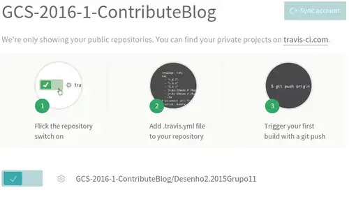 Assim, para configurar o Travis CI, os seguintes passos foram executados: