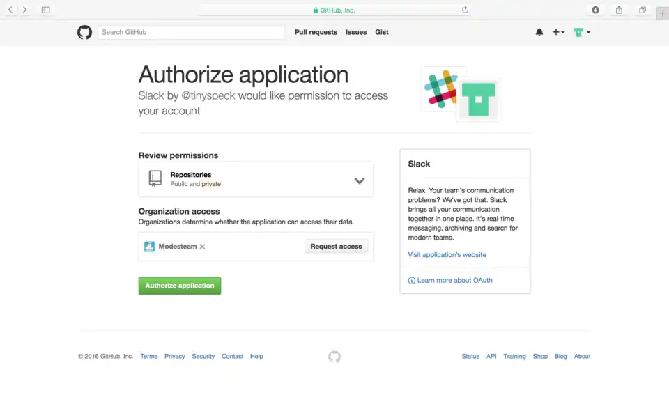 6. A página do github será acessada, para permitir o acesso aos repositórios. Clique em "Authorize Application"