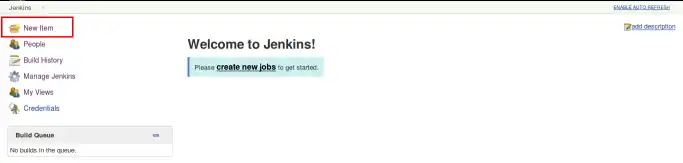 - Vá para a tela inicial do Jenkins e clique em "New Item".