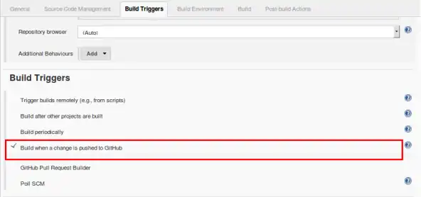 - Selecione o checkbox Build when a change is pushed to GitHub e salve a configuração.
