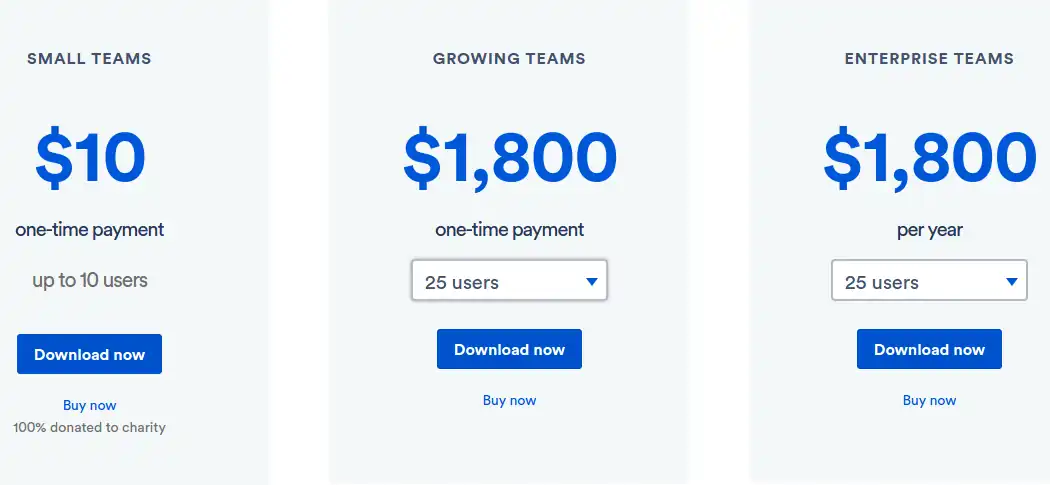 Para planos empresariais e com grandes equipes e com hospedagem do servidor por conta própria, é possível adquirir os seguintes planos: