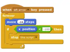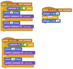 É possível também executar determinadas ações somente após a interação do usuário. Nestes momentos usaremos blocos de controle: quando o usuário clica em algum objeto ou pressiona alguma tecla, por exemplo. No exemplo ao lado, o usuário clica na seta esquerda.