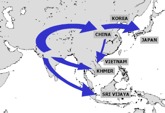 A partir de então e no período de alguns séculos, o Budismo Mahayana floresceu e espalhou-se a este, da Índia ao sudeste asiático e em direcção à Ásia Central, China, Coreia e Japão (em 538).