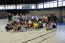 O espaço utilizado foi uma das quadras do ginásio do Sesc (Santos,SP). Nós, alunos da UNIFESP, nos separamos em cinco grupos, nos quais diferentes materiais foram utilizados para que diferentes atividades fossem aplicadas para as crianças. Os grupos utilizaram para brincadeiras: