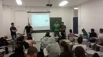 Logo após a apresentação do texto em que o grupo era responsável, os mesmos mostraram a sala o seu respectivo registro da wikiversidade da aula 11, dando ênfase novamente ao tema Jogos Cooperativos, as brincadeiras feitas com corda no Clube Regatas Saldanha da Gama, usando a brincadeira de pular corda como uma forma de valorizar o que as pessoas entendem como cultura e a partir dessa cultura, propõe uma dinâmica, trazendo situações de problematizações durante o jogo, tendo como objetivo a obtenção de formas de desenvolvimento com base no intelecto.