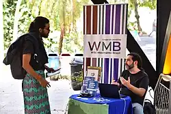 Durante um dos dias do evento, o WMB montou um estande com alguns materiais de divulgação e Célio Costa Filho, gerente Administrativo do Wiki Movimento Brasil, interagiu com os participantes ao longo do dia. No dia 13 de julho, Célio falou sobre como a Wikipédia e seus projetos irmãos podem ser usados como ferramenta de ensino e como instrumento de divulgação científica.