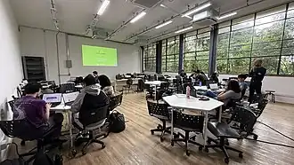 Outra oficina realizada em sala de aula aconteceu em parceria com a Universidade São Caetano do Sul. Na disciplina de Tecnologia e Educação, ministrada pelos professores Liráucio Girardi Jr e Carlos A. F. Brito no curso de mestrado em educação, os alunos aprenderam sobre os diversos projetos dentro do ecossistema da Wikimedia e editaram verbetes na Wikipédia sobre a região do Grande ABC.