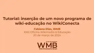 Assistente de projetos do Wiki Movimento Brasil (WMB). Jornalista, especialista em Comunicação Estratégica pela Universidade Federal da Bahia (UFBA), graduada em Comunicação Social/Jornalismo pela Universidade Federal do Recôncavo da Bahia (UFRB).