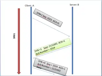 O TCP estabelece um circuito virtual com a abertura de uma sessão entre origem e destino. Neste processo a máquina de origem verifica se o destino está apto a receber os segmentos que serão encaminhados. Esse processo recebe o nome de Handshake Triplo pois são três verificações conforme abaixo: