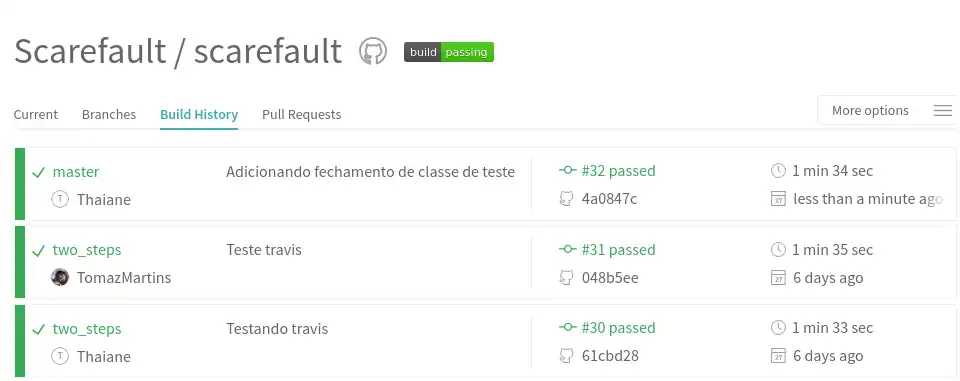 | Integração Contínua | (02-20) jun 2016 | Estudar e Implantar Integração Contínua com Travis |