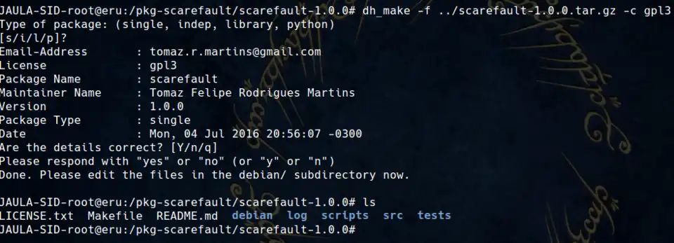 Finalizada essa etapa, temos o Scarefault "debianizado". Agora deve-se partir para o empacotamento.
